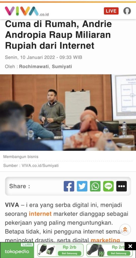 Saya Andrie Andropia, mantan PNS—posisi yang banyak orang impikan. Namun saya memilih keluar, bukan karena tidak mau mengabdi melainkan ingin berbuat lebih besar, saya memilih jalan baru di dunia affiliate dan digital Marketing, kini dalam satu bulan saya meraih omset 1 miliar rupiah.